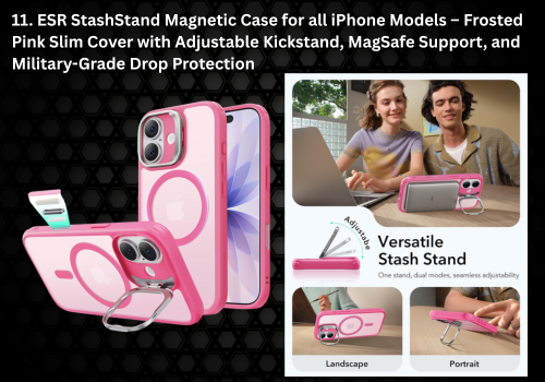 11. ESR StashStand Magnetic Case for iPhone Series – Frosted Pink Slim Cover with Adjustable Kickstand, MagSafe Support, and Military-Grade Drop Protection