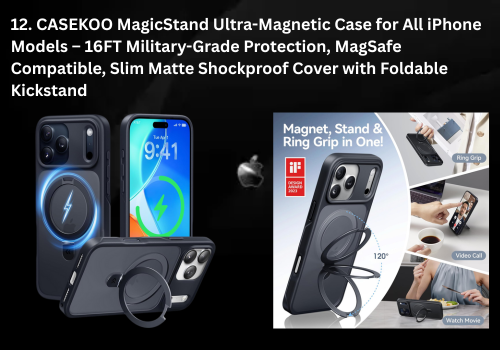 12. CASEKOO MagicStand Ultra-Magnetic Case for iPhone Pro Max and Other Series – 16FT Military-Grade Protection, MagSafe Compatible, Slim Matte Shockproof Cover with Foldable Kickstand