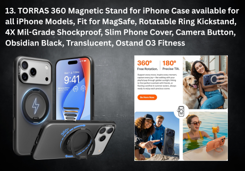 13. TORRAS Ostand O3 Fitness Magnetic Case for iPhone Series – 360° Rotating Kickstand, 4X Military-Grade Protection, Slim Translucent MagSafe Cover