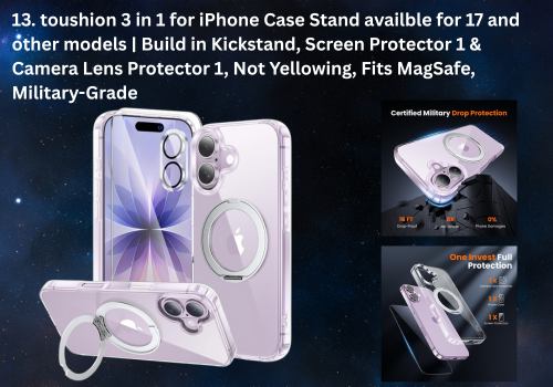 14. Toushion ClearShield 3-in-1 MagSafe Case for iPhone Models – Crystal-Clear Cover with 360° Kickstand, Screen & Lens Protectors, Military-Grade Protection