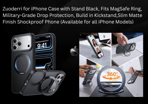 15. Zuoderri ArmorStand MagSafe Case for iPhone 17 Pro and Other Models – Slim Shockproof Cover with 360° Kickstand & Military-Grade Protection