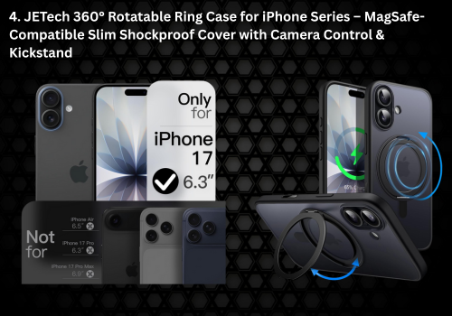 4. JETech 360° Rotatable Ring Case for iPhone Series – MagSafe-Compatible Slim Shockproof Cover with Camera Control & Kickstand (6.3″, Black)