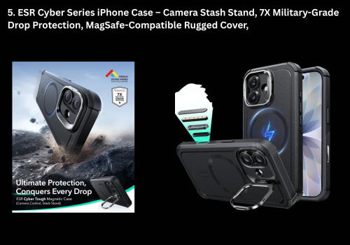 5. ESR Cyber Series iPhone Case – Camera Stash Stand, 7X Military-Grade Drop Protection, MagSafe-Compatible Rugged Cover