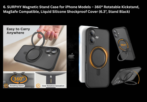 6. SURPHY Magnetic Stand Case for iPhone Models – 360° Rotatable Kickstand, MagSafe Compatible, Liquid Silicone Shockproof Cover (6.3″, Stand Black)
