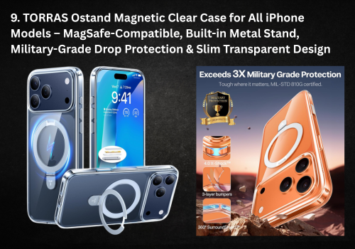 9. TORRAS Ostand Magnetic Clear Case for iPhone 17 Pro Max and more– MagSafe-Compatible, Built-in Metal Stand, Military-Grade Drop Protection & Slim Transparent Design